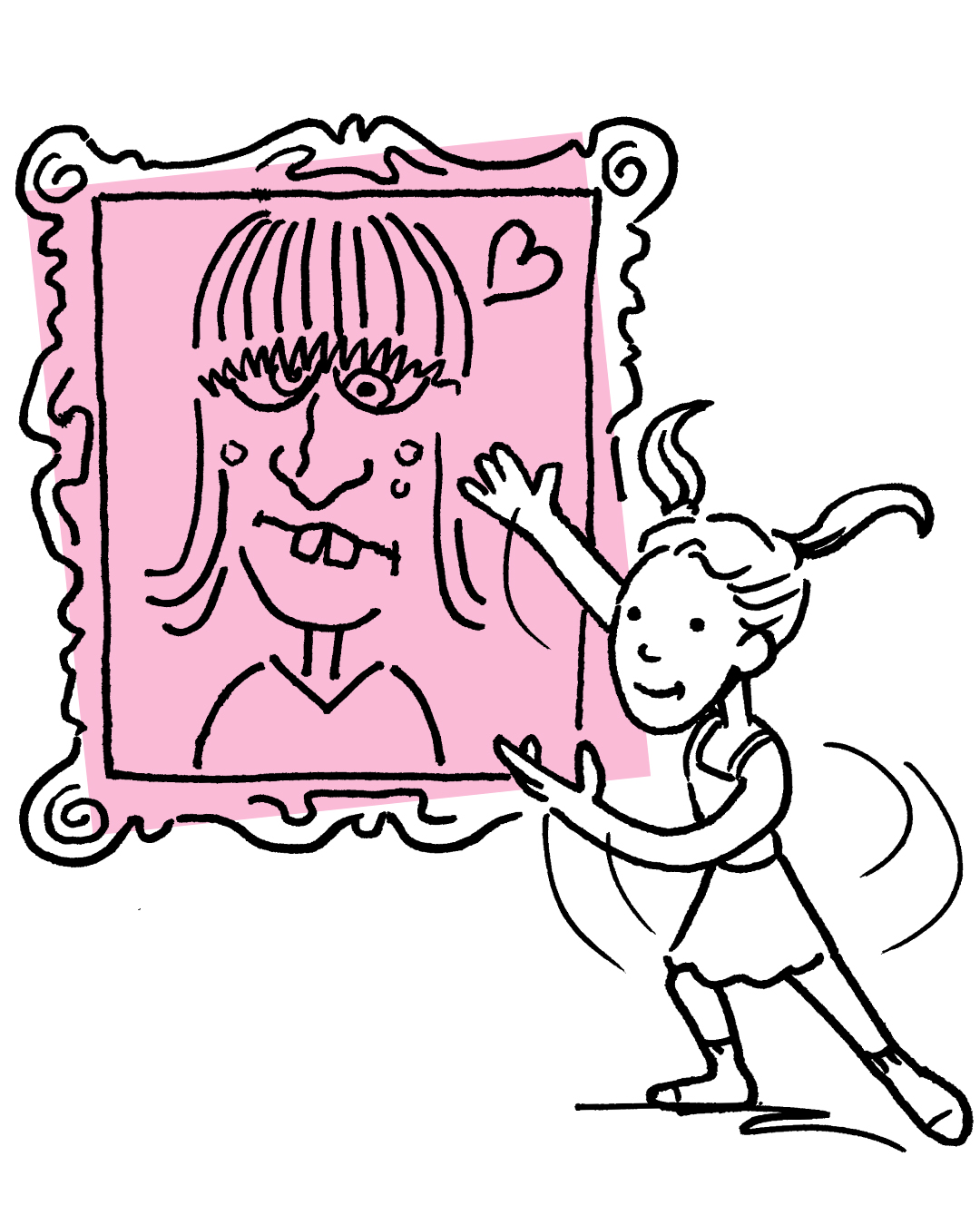 We had a lovely time drawing self portraits last night and John admired the girls’ work this morning.